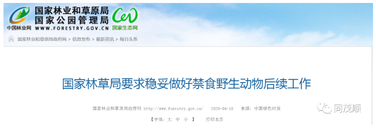 中國綠色時報4月10日報道(記者 遲誠) 為進一步貫徹落實《全國人民代表大會常務委員會關于全面禁止非法野生動物交易、革除濫食野生動物陋習、切實保障人民群眾生命健康安全的決定》,國家林業(yè)和草原局近日印發(fā)通知,要求穩(wěn)妥做好禁食野生動物后續(xù)工作。